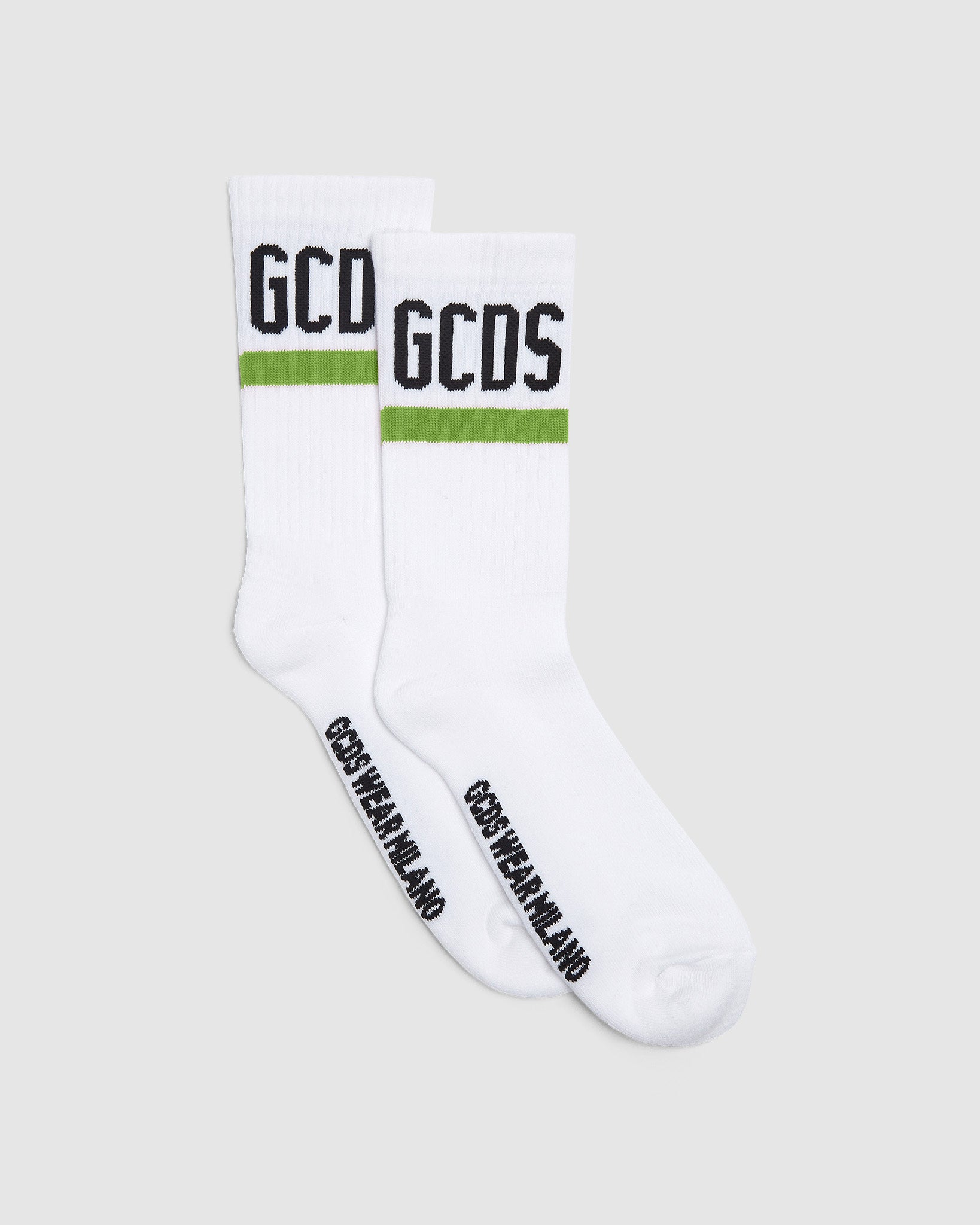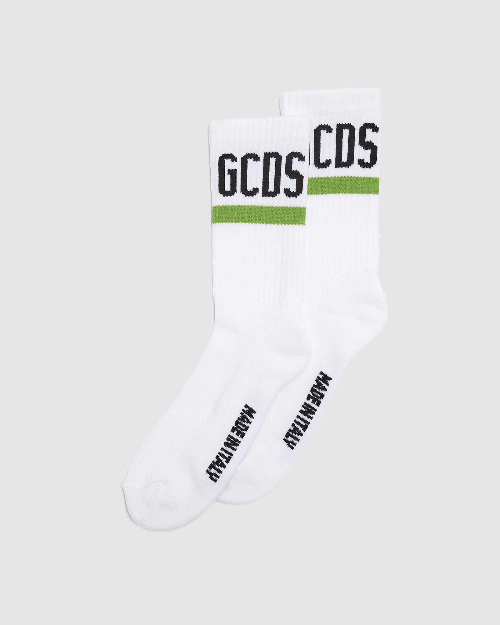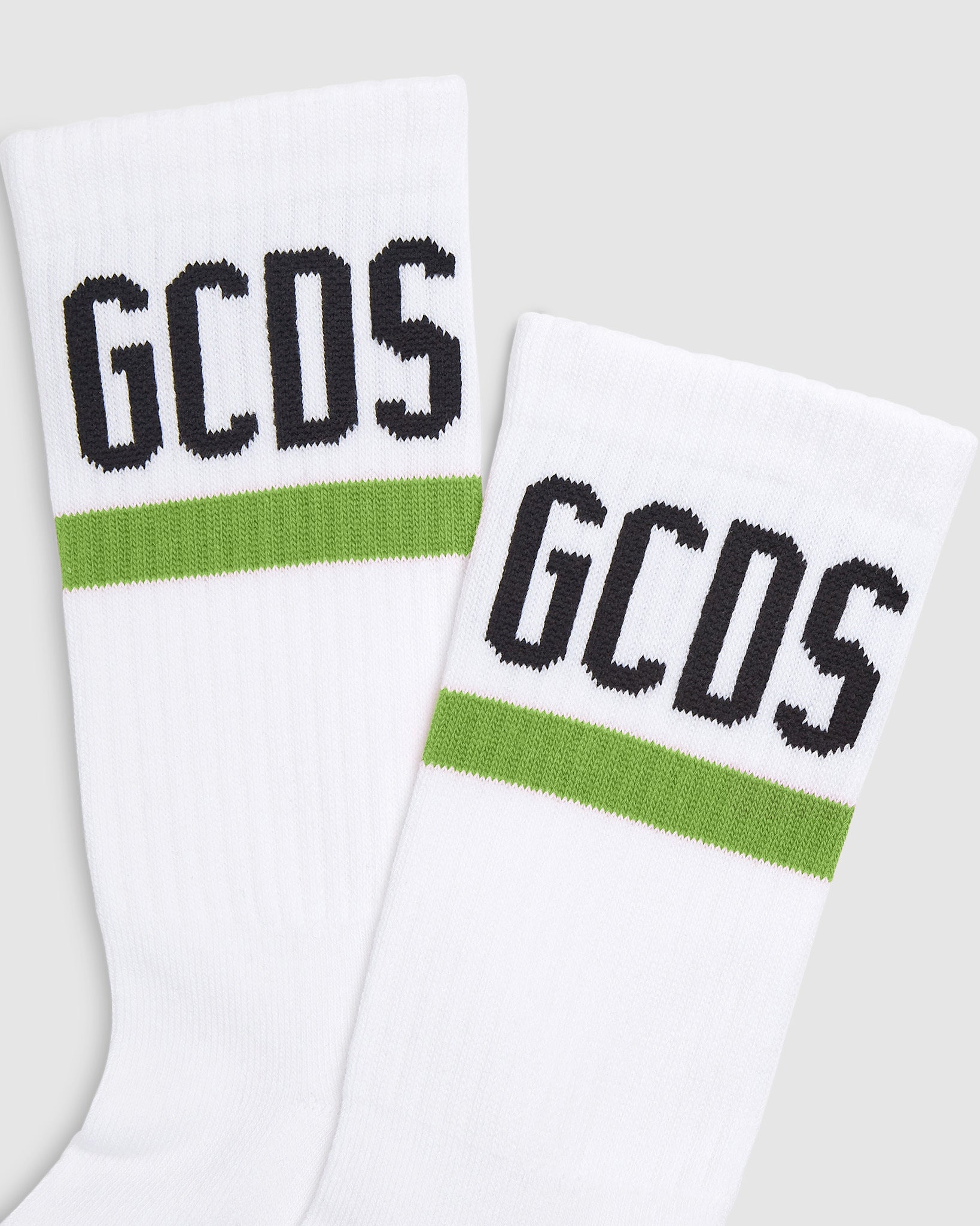 Cotton blend socks with inlaid GCDS logo and contrasting linear artwork.