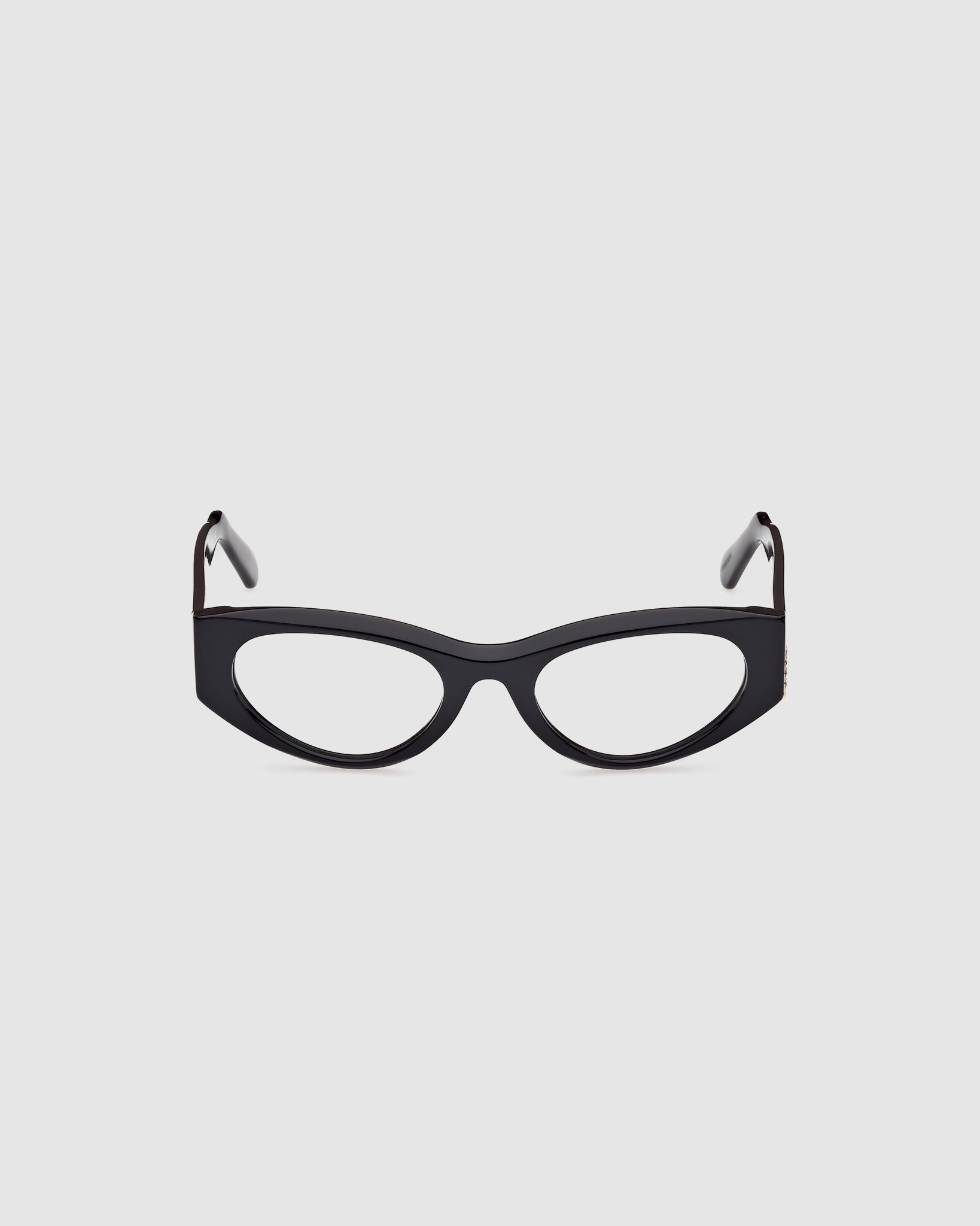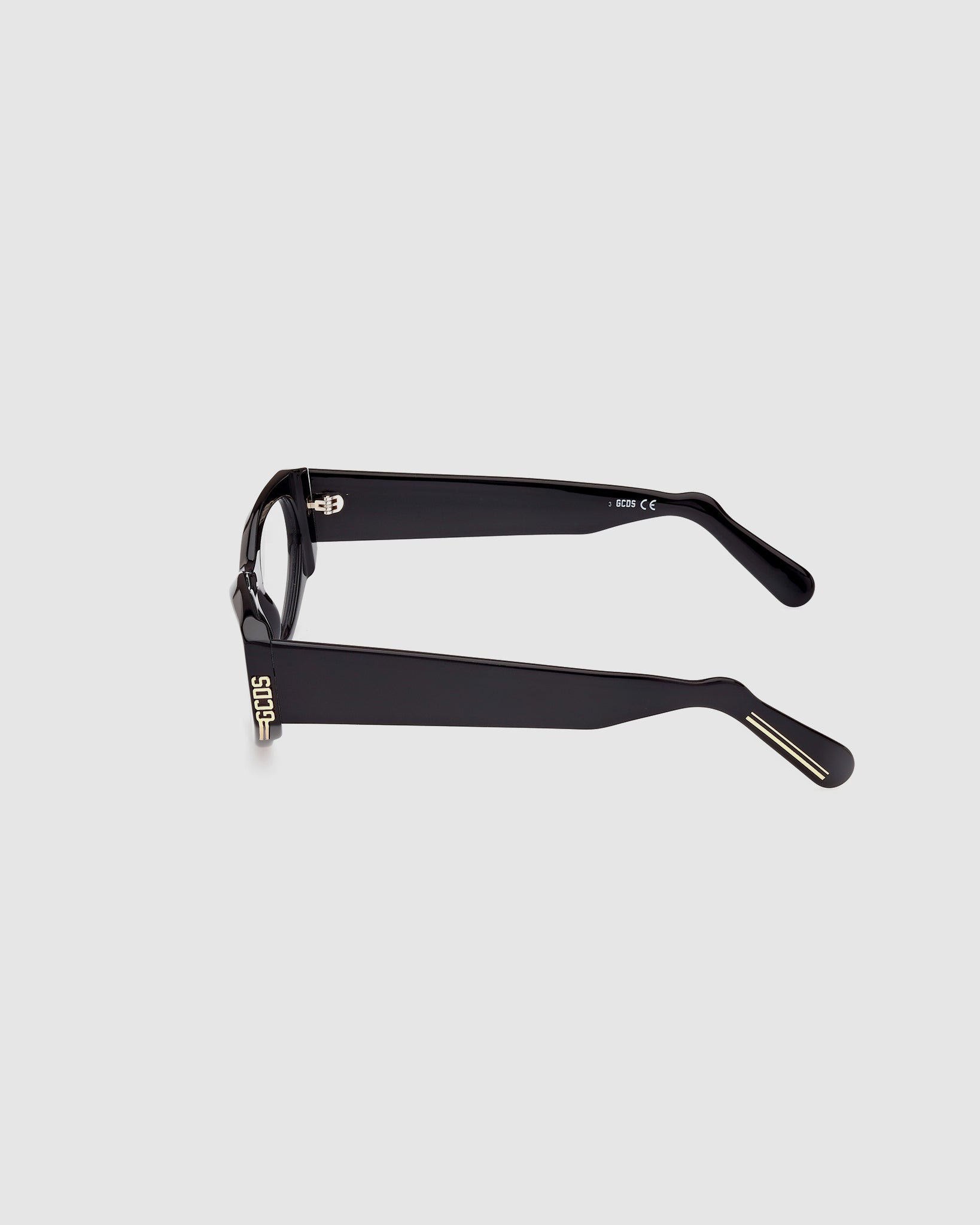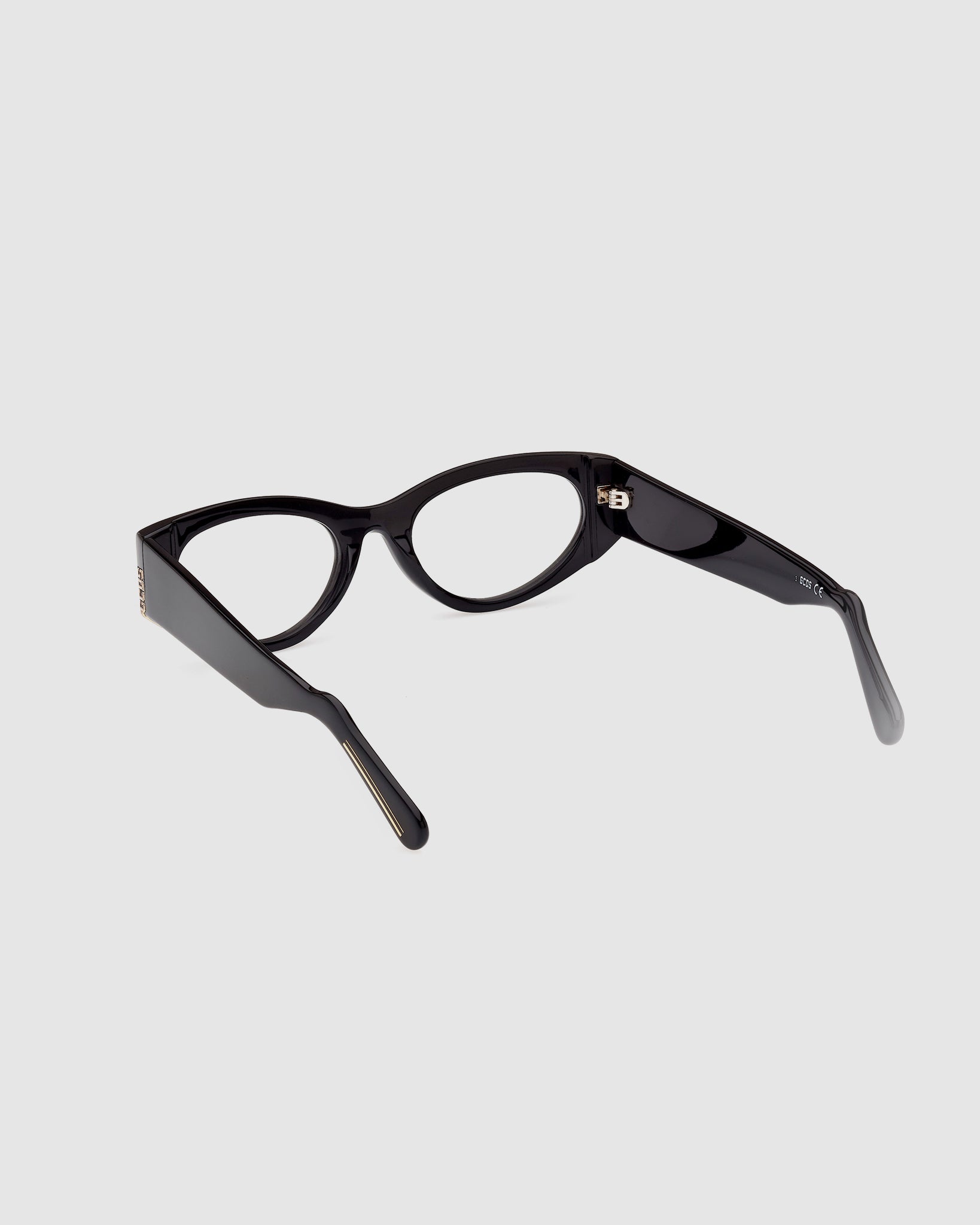 Acetate style characterized by a trendy narrow cat-eye shape The style is enriched by the really distinctive structure with the GCDS metal logo on the sided profile of the eyeglasses.