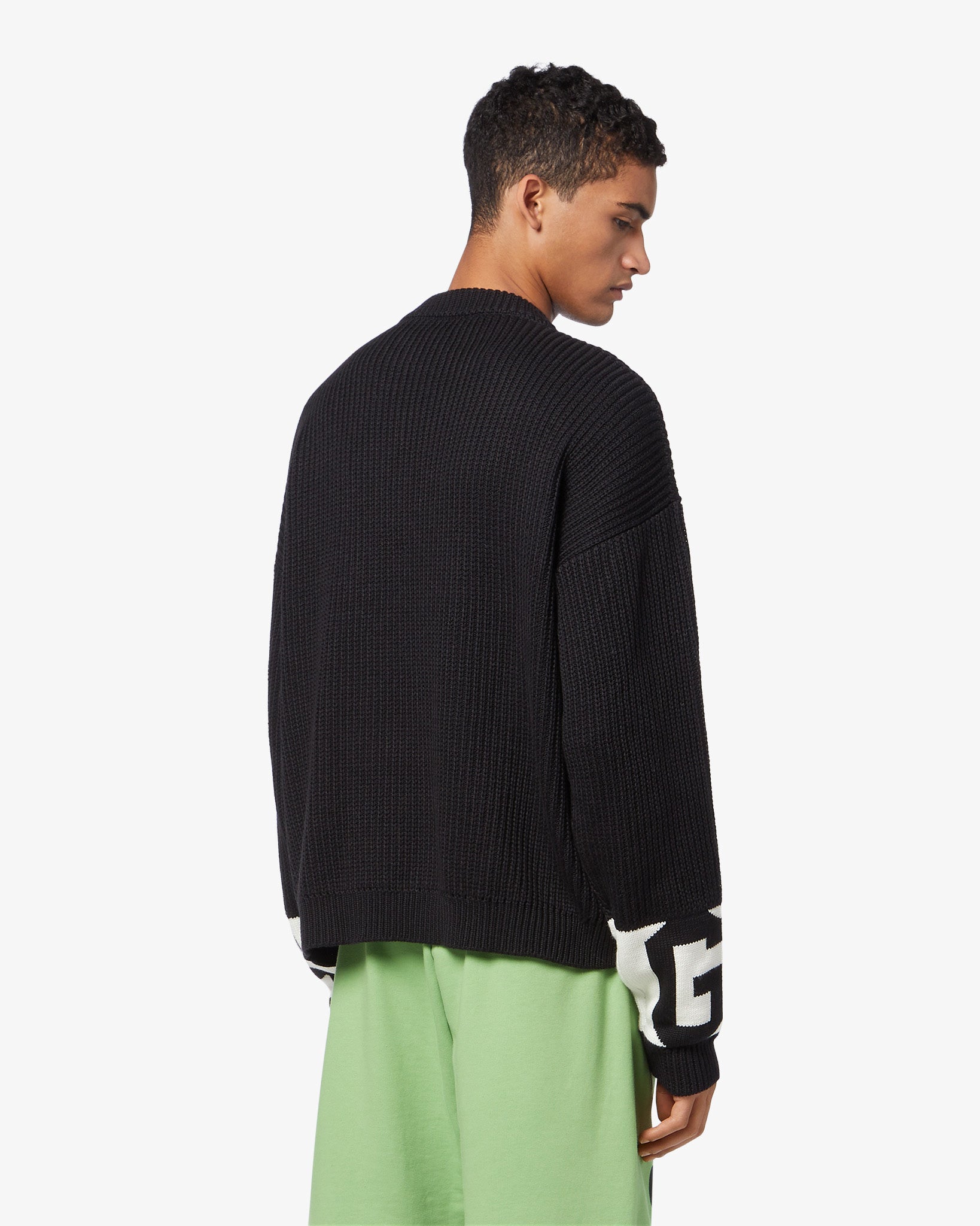 Wool-blend crew-neck sweater with shaved knit. Inlaid new GCDS low logo band on front. Regular fit.
