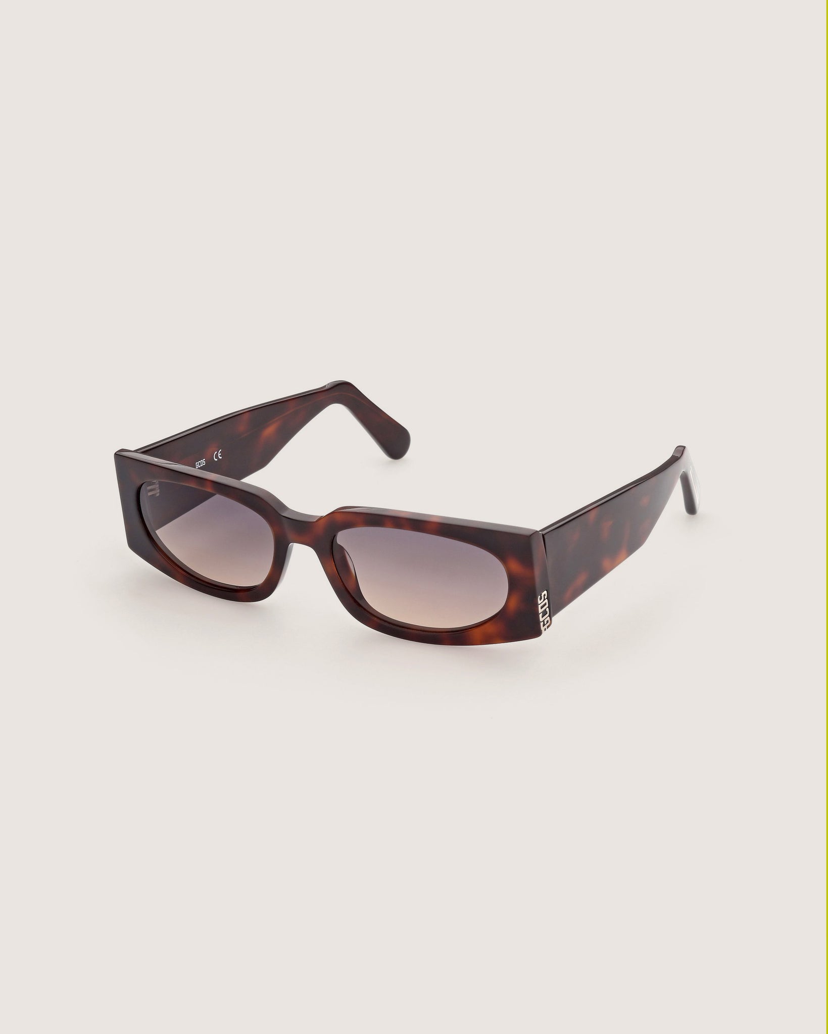 An elegant rectangular construction that conveys a distinctive style. The acetate frame bears the GCDS metal logo on the lateral profile.