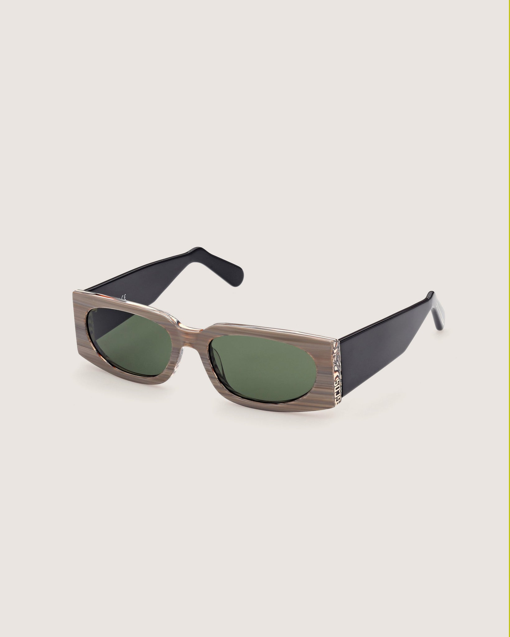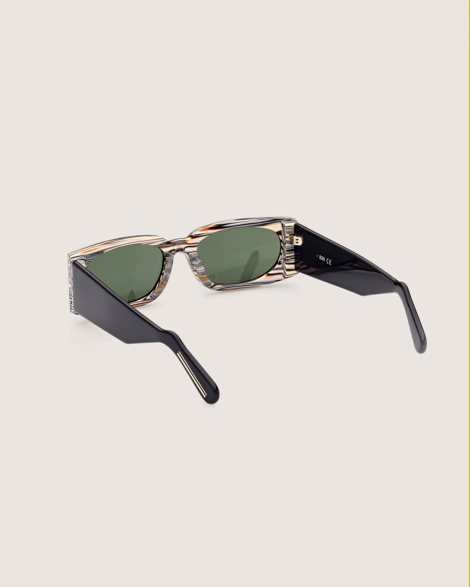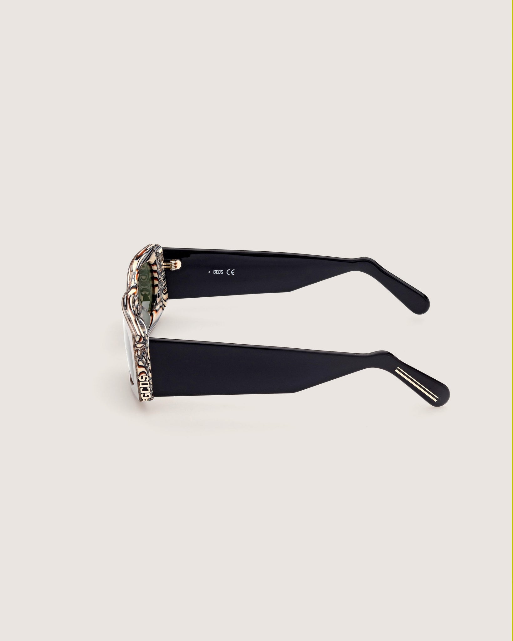 An elegant rectangular construction that conveys a distinctive style. The acetate frame bears the GCDS metal logo on the lateral profile.#GD0016